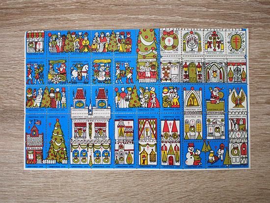 アメリカのヴィンテージ品になります。1970年の複十字のクリスマスのシールです。40年以上も経過しているのにシートでこんなに状態が良い複十字シールは中々ないのではないでしょうか。かなりのレアアイテムです。クラシックな雰囲気のデザインが素敵です。これからのクリスマスシーズン、お手紙に忍ばせたり、コラージュの素材に利用しても素敵ですね。シートサイズ:約12.8x20.5cm 50枚入り