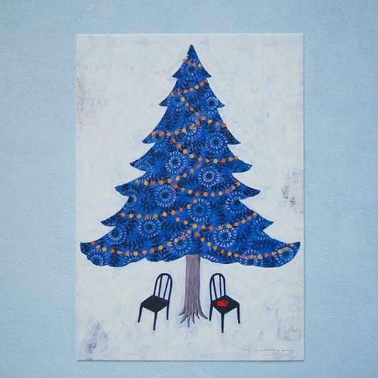 こちらは素敵な青いクリスマスツリーのデザインです。