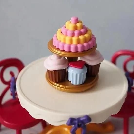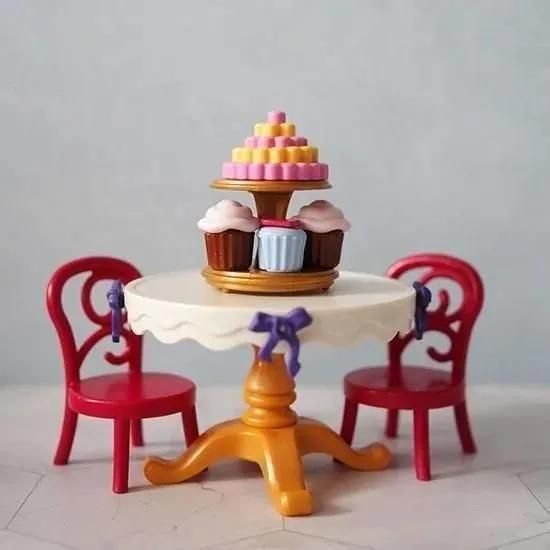 おいしそうなケーキに素敵な丸形テーブルがセットになっています。