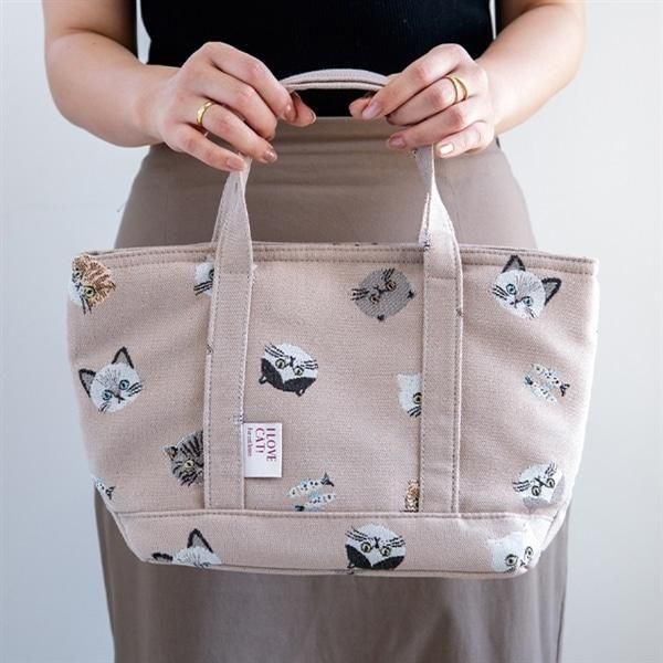 いろんな可愛いネコをちりばめた、オリジナルパターン生地のトートバッグ。