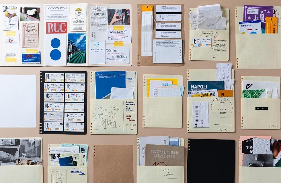 旅で手にしたチケット、パンフレット、レシート、ショップカードなどを